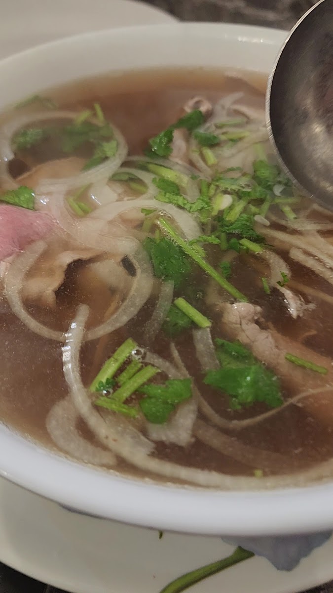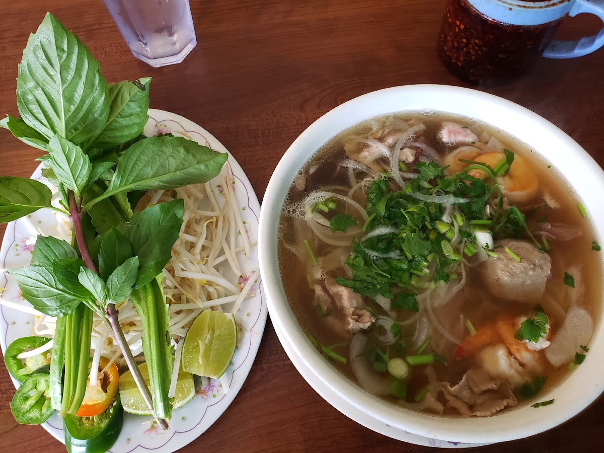 I did so much research before coming here because I wanted to choose the best pho in the area and I'm happy I came here! My friends and I came around 12pm on a Sunday and it got jam packed soon after. The menu is huge so you have a variety of options to choose from. I got the rare steak pho and the broth was so flavorful and refreshing, I didn't need to add additional sauces. I love mine hot so I added chilli oil as well as lime, mint, and bean sprouts of course! I knocked it down one star because the service was slow and we didn't get checked on but nbd!